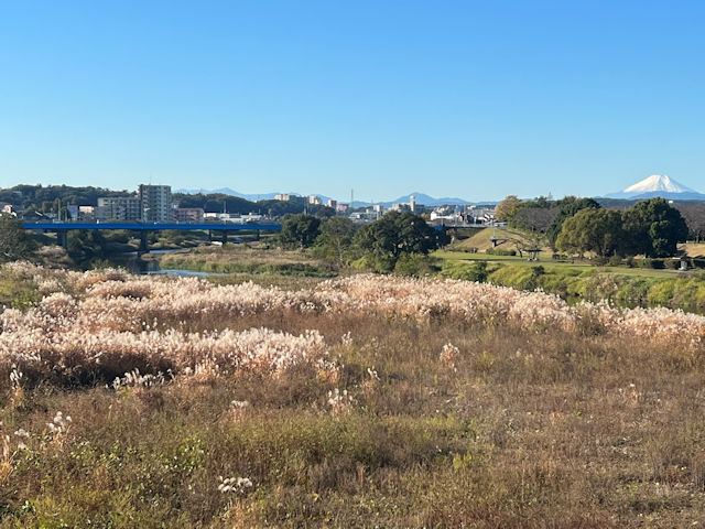 秋から冬の晴天の日には、入間川から富士山が良く見えます。