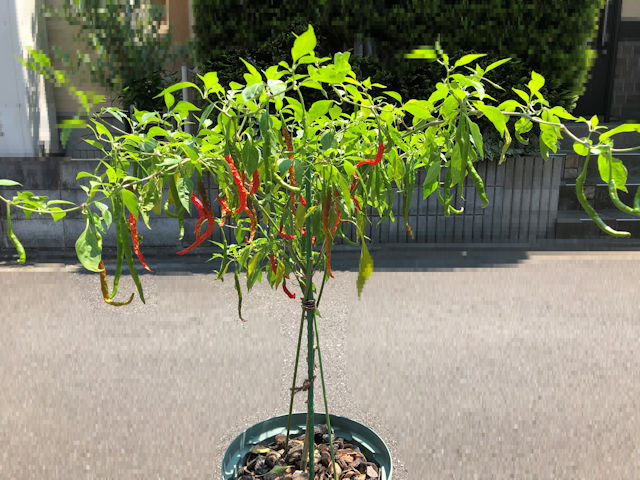 鉢植えでも下の写真のようにいいサイズがたくさん実るので、料理にすぐ使うのに重宝しそうです。