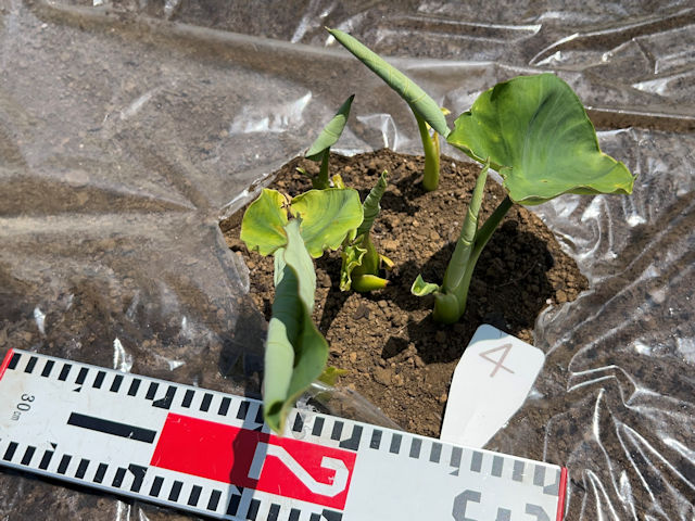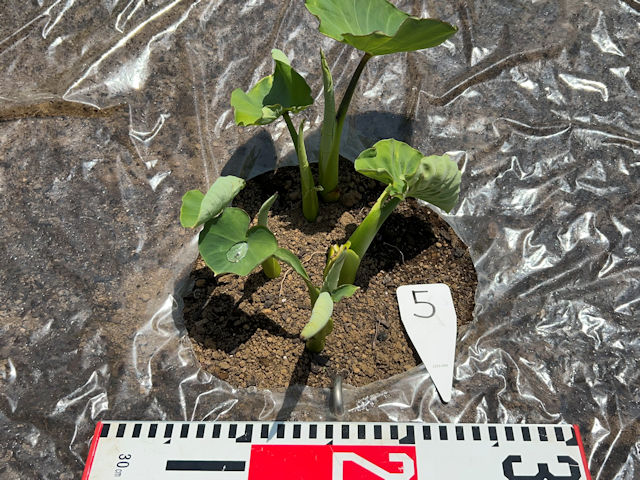 親芋#3号です。定植して19日で4本の芽が出てきました。